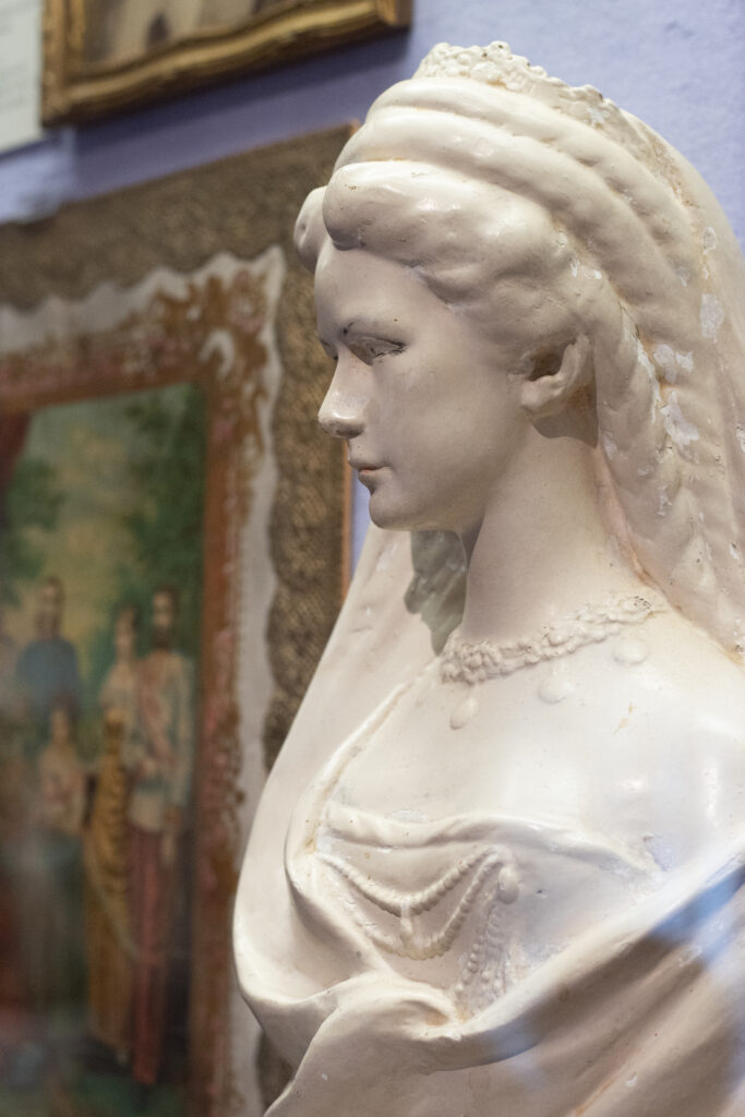 A virtuáis piactéren kutatatva találtam rá a saját, „igazi” Erzsébet szobromra, egy addig sosem látott alkotásra. Ám mégis ismerősnek találtam valahonnan. Fellapoztam a szoborkutatási jegyzeteimet, megtaláltam az újságcikket*, benne az „én Erzsébet szobromról” egy fotót, amely felfedte az alkotóját (Frattini Zoraldo) és a történetét is. Így került egy asztalos műhely polcáról gyűjteményembe ez a szobor.
